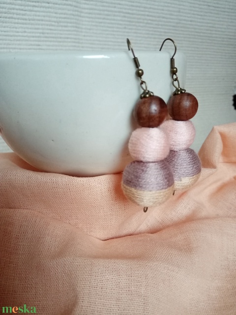 ŐSZI GESZTENYE textilbogyó fülbevaló, fonalékszer, textil fülbevaló