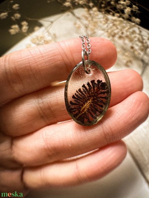 Medálos nyaklánc - Műgyanta medál tobozzal díszítve