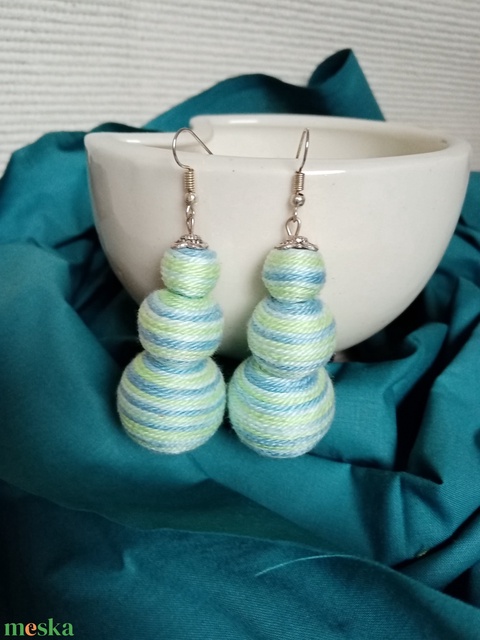 KÉK LAGÚNA textilbogyó fülbevaló, fonalékszer, textil fülbevaló