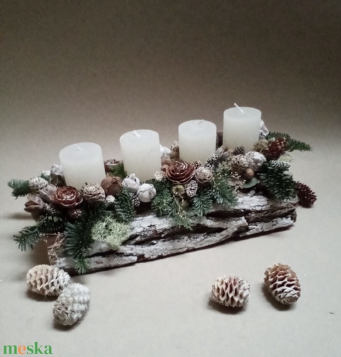 Fatörzs adventi asztaldísz, dekoráció