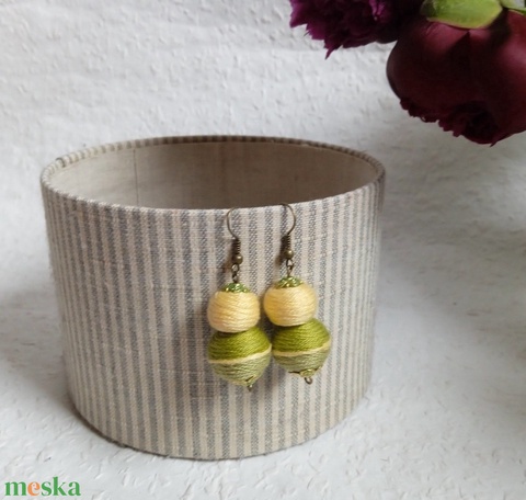 Barack-zöld textilbogyó fülbevaló, fonalékszer, textil fülbevaló