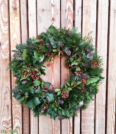 Hagyományos karácsonyi, ünnepi ajtódísz, koszorú