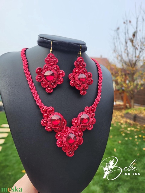 Daisy bordó kézműves menyecske sujtás ékszerszett