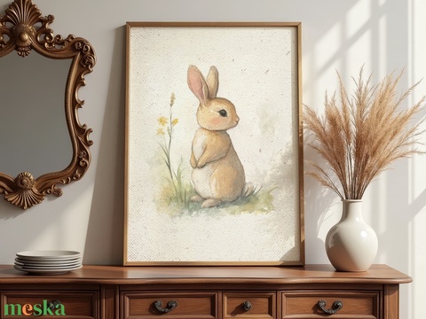 Baba/Gyermekszoba falikép - Vintage - Nyuszi hopp (V18)