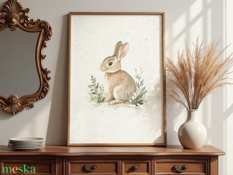 Baba/Gyermekszoba falikép - Vintage - Nyuszi ül a fűben (V23)