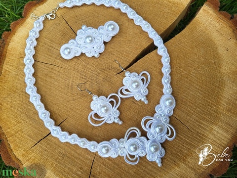 Csupagyöngy hófehér kézműves sujtás ékszerszett hajcsattal