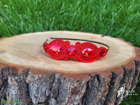 Tulipános kincsesláda piros kézműves sujtás hajráf