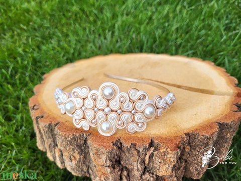 Jázmin törtfehér csupagyöngy kézműves sujtás hajráf