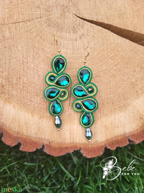 Kleopátra smaragd- arany kézműves sujtás fülbevaló