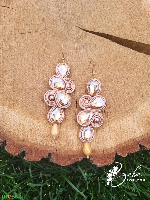 Kleopátra bézs kézműves sujtás fülbevaló