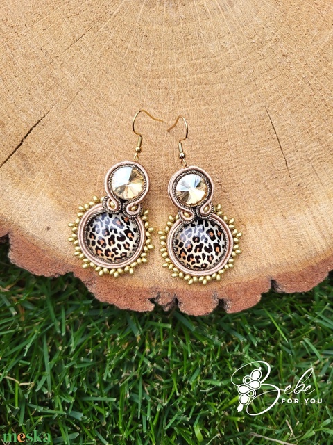 Párducmintás bézs gyöngycsipkézett kézműves sujtás fülbevaló