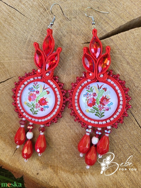 Matyó gyöngyzuhatag kézműves sujtás fülbevaló