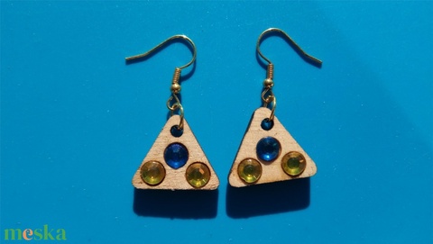 Kék, sárga strasszos buli fülbevaló. Karácsonyra, szilveszterre, mikulásra, vidám házibuliba, koncertre vagy ajándékba.
