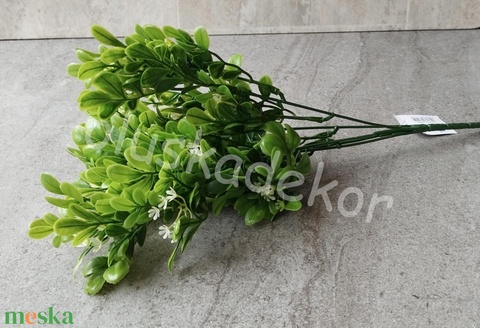 Díszítő zöld bokor, dekorációs műnövény apró virágokkal, 35cm