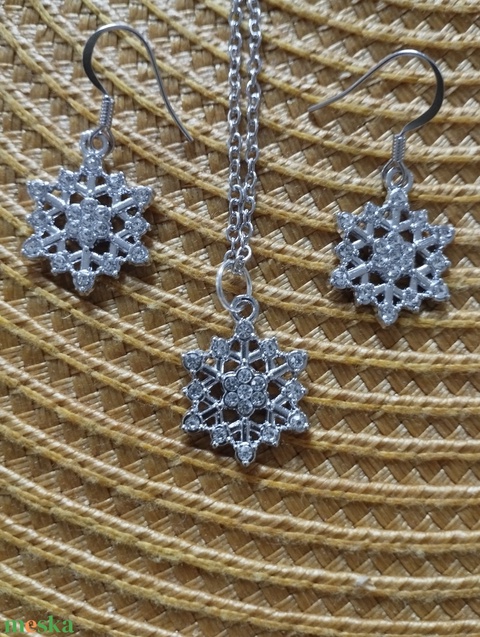Nyaklánc fülbevaló orvosi acél szett ezüst színű hópehellyel