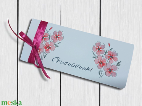 Esküvői pénzátadó boríték - rózsaszín virágos