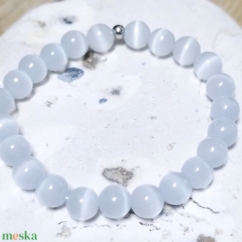 Rendeléskor kérem megadni a csuklóméretet, ami a csukló szorosan körben lemérve + 1-2 cm. A terméket négy soros szilikongumira fűzöm a tartósság érdekében, minden sort külön elkötve.