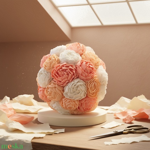Romantikus Esküvői Függő dísz – Virággömb krepp virágokból, kézzel készült