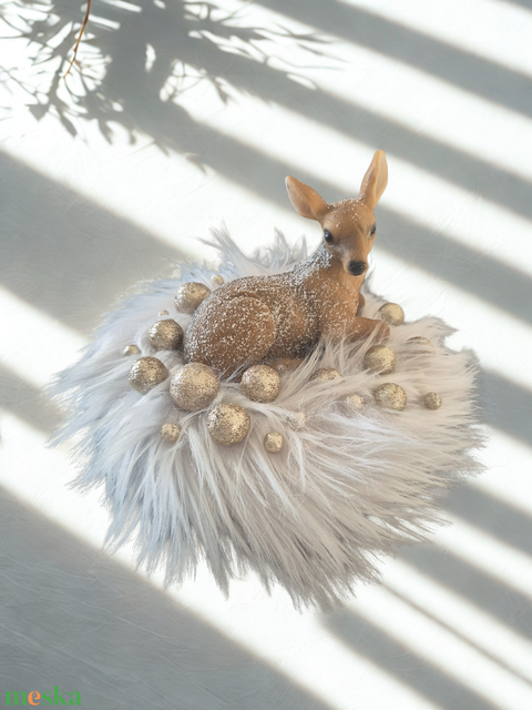 Elegáns őzikés téli asztaldísz arany fényekkel