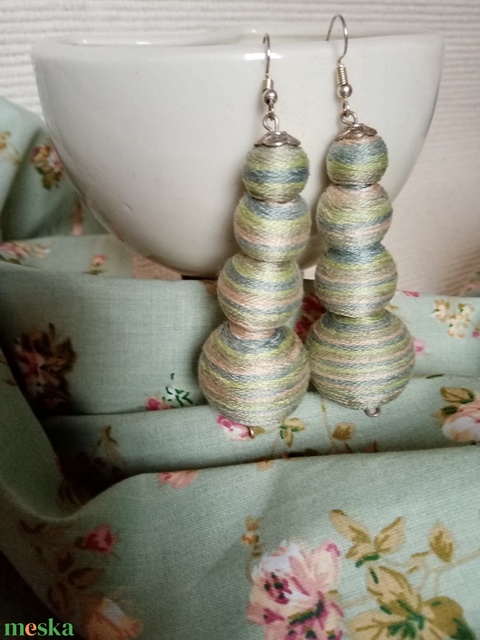 ZÖLDIKE textilbogyó fülbevaló, fonalékszer, textil fülbevaló