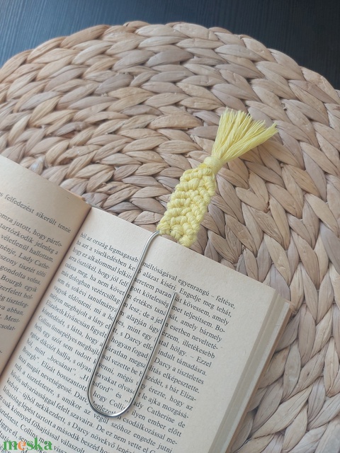 Könyvjelző - halvány sárga makramé gémkapocs