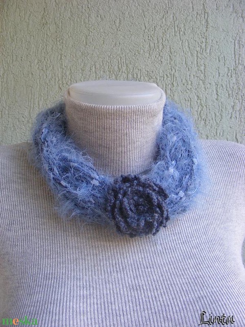 Téli horgolt nyaklánc kék színekben