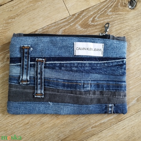 A bélelt neszesszert patchwork technikával, újrahasznosított farmerből alkottam. A termék szeretettel és gondossággal készült, új életet adva a feleslegessé vált ruhadaraboknak.