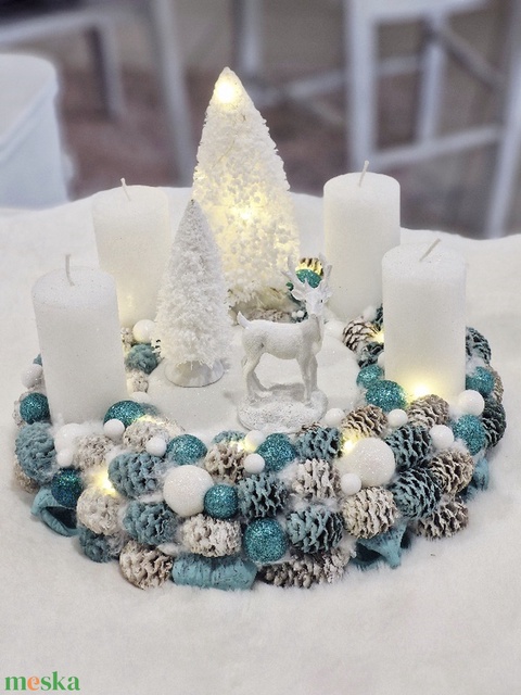 Türkiz adventi asztaldísz