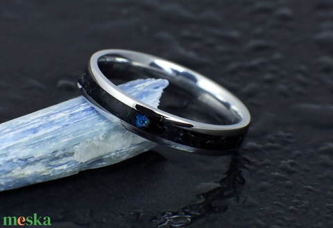 Nemesacél Gyűrű Turmalin Ásvánnyal És Kék Opállal. Vízálló, Karcálló, Anti-Allergén, Egyedi Megrendelésre!