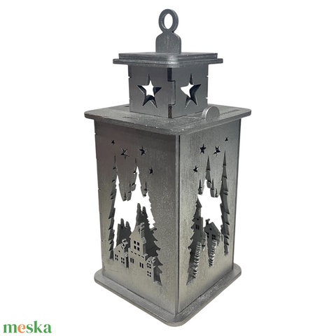 Karácsonyi ezüst mécsestartó – Téli falumotívummal