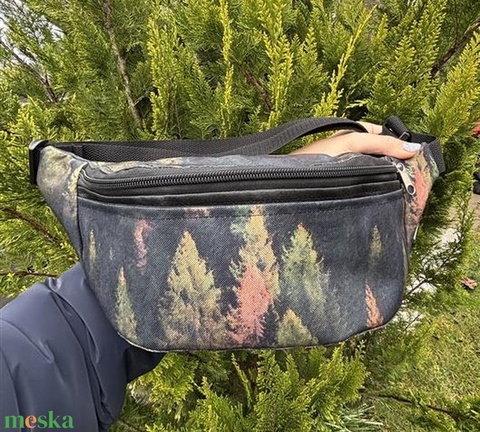 Őszi erdő mintás övtáska textilbőrrel