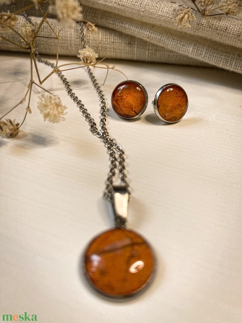 Medálos nyaklánc fülbevalóval - Őszi leveles ékszerszett