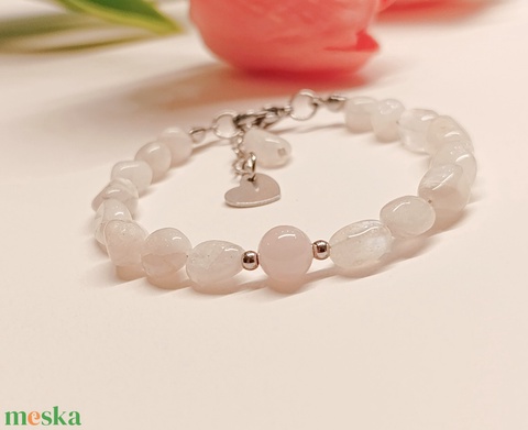 Szivárvány holdkő és madagaszkári rózsakvarc kapcsos női ásványkarkötő
