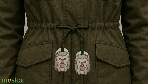 Sündisznós sünis zsinórdísz Süni mintával készült háti és tornazsákdísz. Sünivel készült függődísz. A csomagban 2 db van