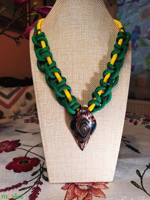 - Anyaga: viszkóz, üveg, fém szerelékek