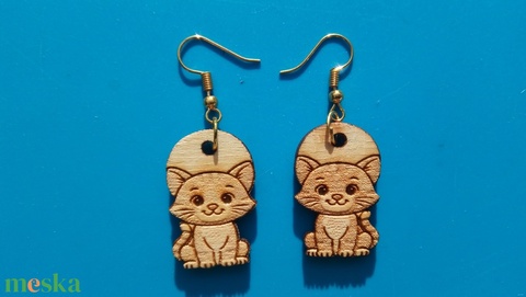 Cica macska fülbevaló. Cicás füldísz, cicával. Kiváló ajándék lánynak, vidám hölgynek, nőnek szilveszterre vagy bármikor