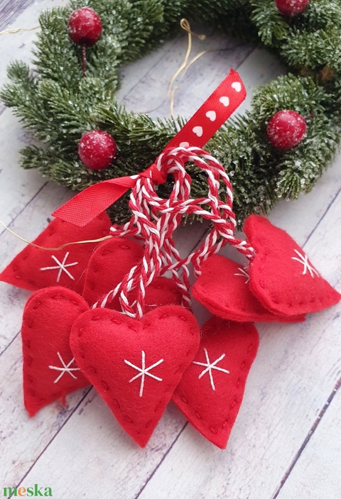 Hímzett karácsonyi ajándékkísérő filc szívek