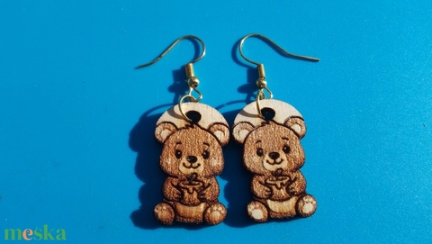 Maci, medve fülbevaló. Macis füldísz macival. Kiváló ajándék lánynak, vidám hölgynek, nőnek szilveszterre vagy bármikor.