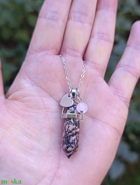 Rodonit és rózsakvarc nyaklánc szív medállal