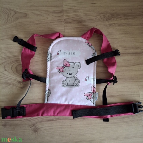 Játék csatos babahordozó, lány macis