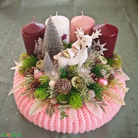 Adventi koszorú rózsaszín horgolt alappal