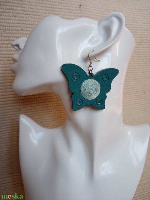 Tengerkék pillangó textilbogyó fülbevaló, fonalékszer, textil fülbevaló, textilékszer