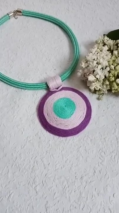 OGEL BIB lila-kék fonalnyaklánc, Textil nyaklánc, textil ékszer, fonalékszer