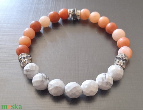 - Anyaga: howlit, pink aventurin, fekete strasszos köztes, ezüst strasszos köztes, gumidamil