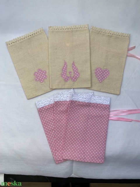 - Anyaga: pamutvászon, pamut csipke, szatén szalag