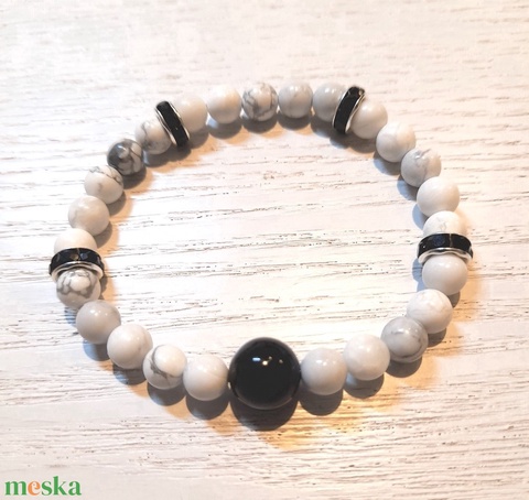 - Anyaga: howlit, fekete achát, strasszos köztes, gumidamil