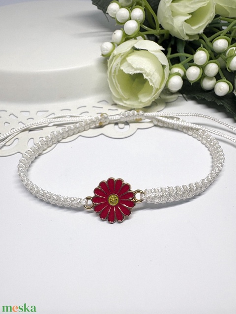 Fonott Makramé Karkötő Virág Medállal