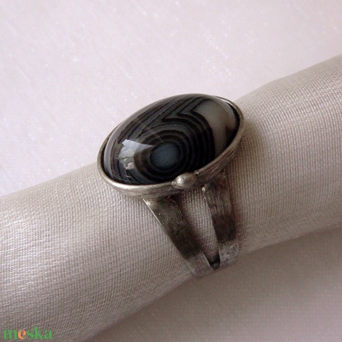 ékszer, gyűrű, szoliter gyűrű, tiffany, vintage, ásvány, elegáns, nagy, állítható, ónix, ovális