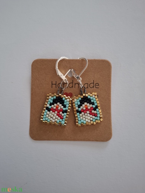 Karácsonyi fülbevaló - hóember / Peyote fülbevaló sterling ezüst akasztóval.