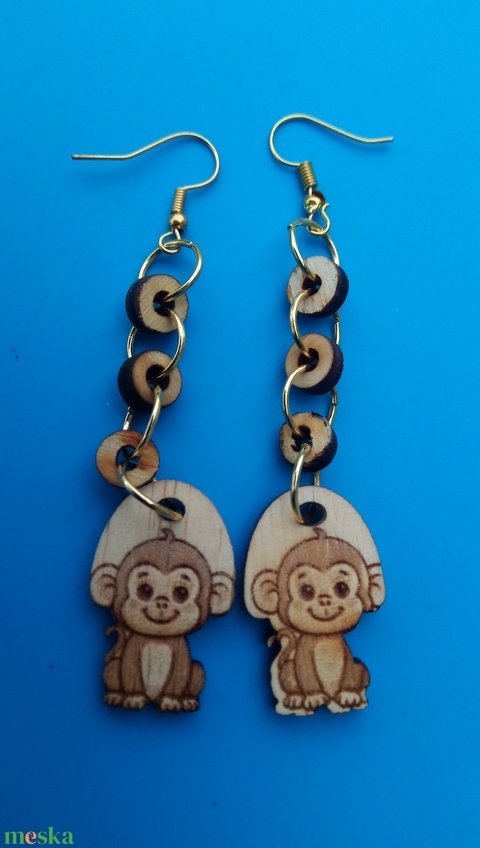 Láncos, lógós, Majom fülbevaló. Majmos füldísz majommal. Kiváló ajándék lánynak, vidám hölgynek, nőnek szilveszterre.